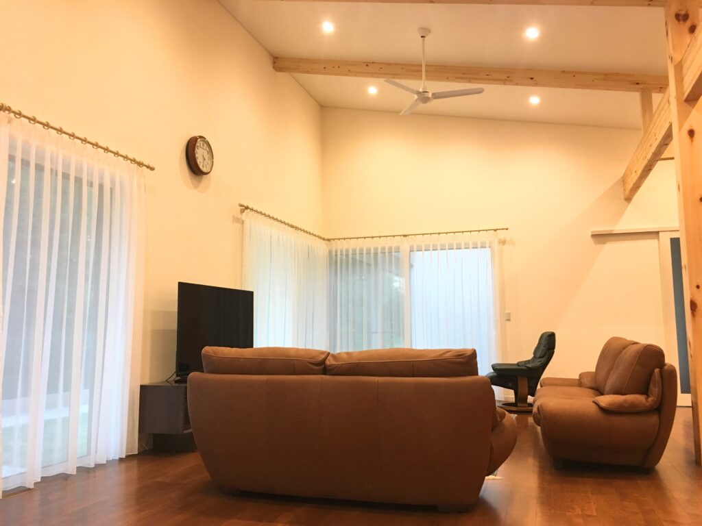 避暑地に建てられており、また、この年は梅雨時期がかなり長く、下地処理に使用した材料が中々乾燥せず仕上げにおいても漆喰の乾燥がかなり遅かった。通常であればカビなどの心配はないが、この物件は通風を考えて施工しました。